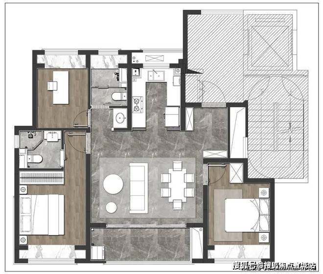 建筑面积约100㎡三房两厅两卫,构筑老、中、青三代人美