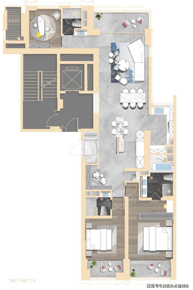 建面约193、237㎡为类一梯一户设计,拥独立门厅;建面约303㎡ 标配2梯1户、私享梯厅,纯粹的大平层圈层!