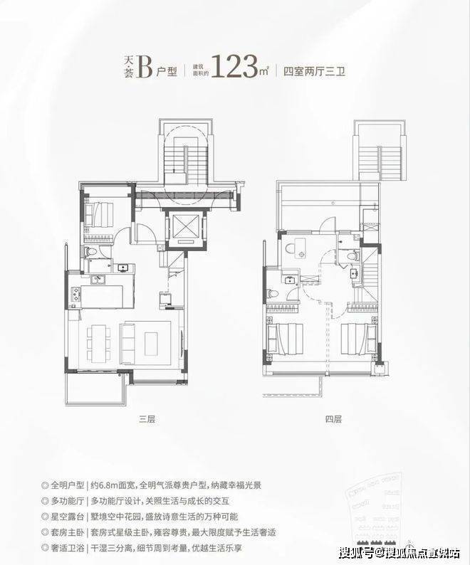 项目由北向南打造了三种不同类型的产品,北面设计为18层高层,中部设计6层叠加,南面为4层叠加,整个地块呈现北高南低布局,丰富了层次感,保证了每种产品南向的采光及景观面。