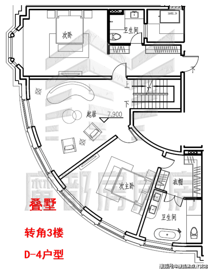 叠加别墅的2-3-4楼D-4特殊户型约433㎡。