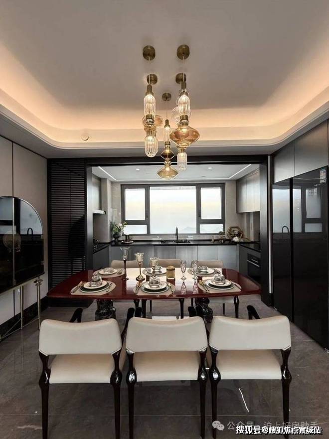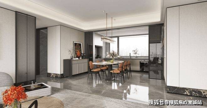 南向大横厅,用光线阐述空间的舒适度与高级感,U型中厨搭配多功能开放西厨,满足世界级美食品位。