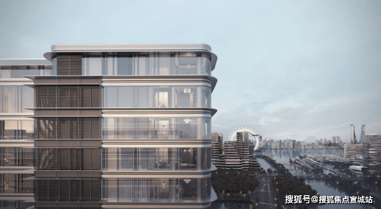 “游艇”造型辅以流动的水波立面舒展的横向线条,圆润的转角处理彰显钱江新城和江河汇的华贵气质让建筑,仿佛原本就应该出现在此。