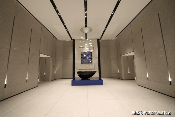 大堂墙面全部采用定制弧面铝板,每一个弧面都代表着经费。