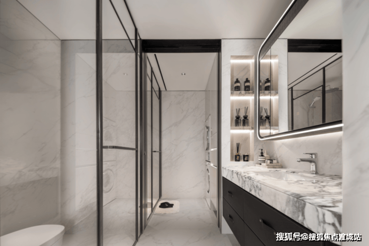 定制细节三:公卫以五星级酒店为范本,打造独特的四分离系统,实现独立洗漱台、卫生间、淋浴间、洗衣区互不打扰,将酒店化体验引入住宅。