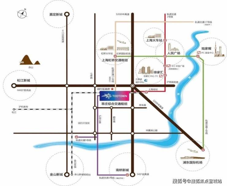 交通配套:地铁1号线莘庄站上盖、5号线、金山支线、20多条公交线路、机场9号线;自驾:沪闵高架快速到达徐家汇商圈,并可转中环、内环到达城市的各个中心板块;S20(外环)、G60(沪昆)、S4(沪金)等高速路,快速抵达虹桥机场、浦东机场、实现奉贤、金山、松江半小时使用圈,和长三角一小时使用圈。