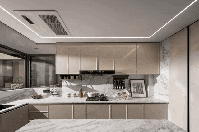 它以大岛台为核心枢纽,既扎根于中式烹饪的实用逻辑,又吸纳西式餐厨的社交属性,让厨房从“单一空间”升级为“多元生活场景发生器”。