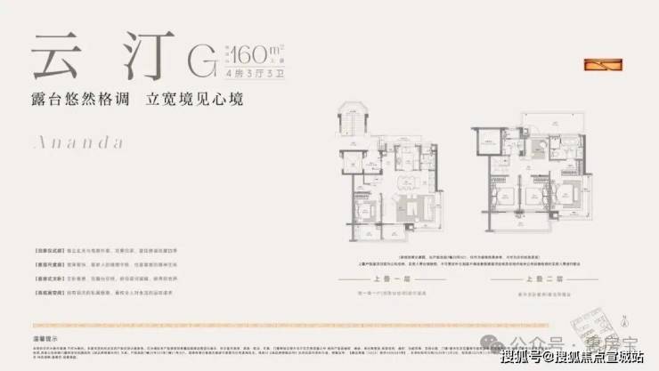 建面约160㎡上叠预计使用率最高约145%、约8.5m横厅双阳台、南北通透主卧套房。