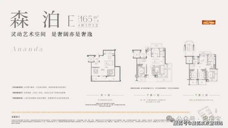建面约165㎡下叠 预计使用率最高约148%、三向采光地下、LDBKG双入户流线、南北通透主卧套房
