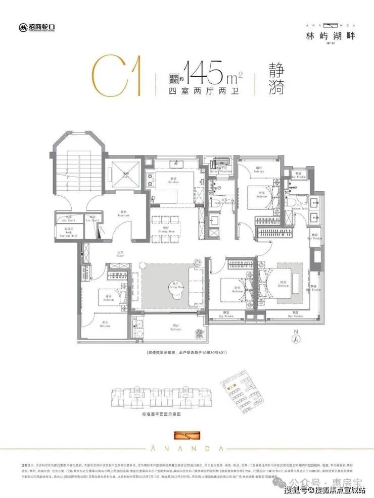 145户型分别位于10号楼和12号楼,双楼王位置,10号楼南侧为低密别墅,南向采光和视野极佳,12号楼南侧正对社区中轴线及室外水景!