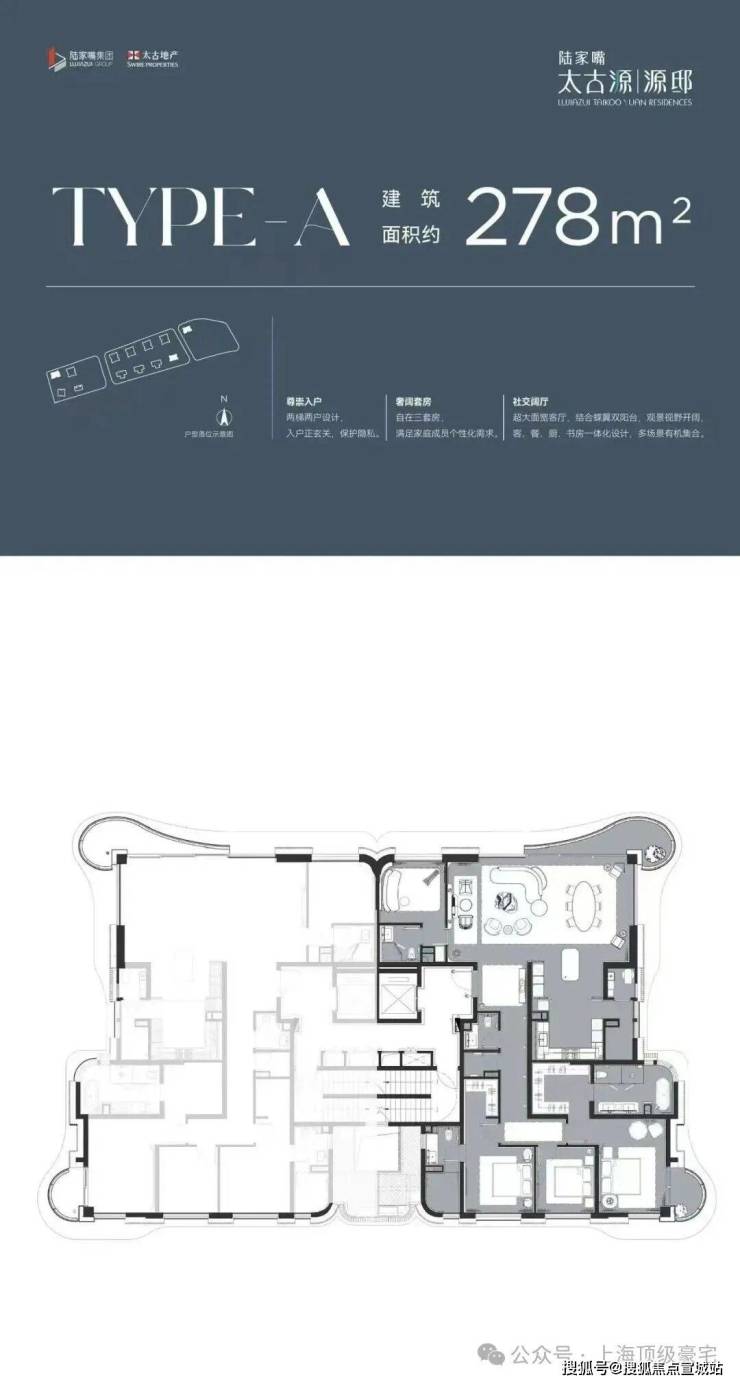 综合体内将推出陆家嘴集团与太古地产匠心打造的高端住宅产品——“陆家嘴太古源 源邸”(Lujiazui Taikoo Yuan Residences),项目将尽享黄浦江约1.5公里超长滨水岸线广阔视野。