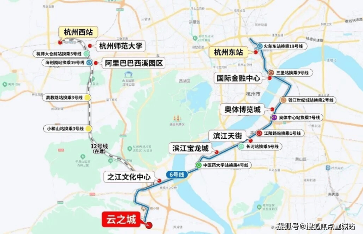 此外,云之城所在的12号线周九路站(在建),未来直连未科、云城等热门板块;4站在6号线美院象山站同台换乘,滨江、奥体、钱新也是一路畅达。