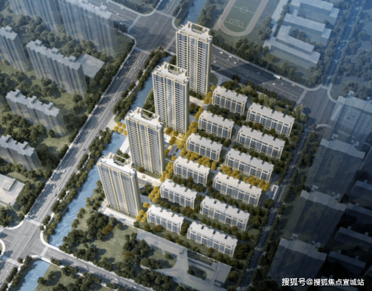 地块方正周边无不利因素,由4栋高层与12栋叠墅组成,整体布局西高东低,