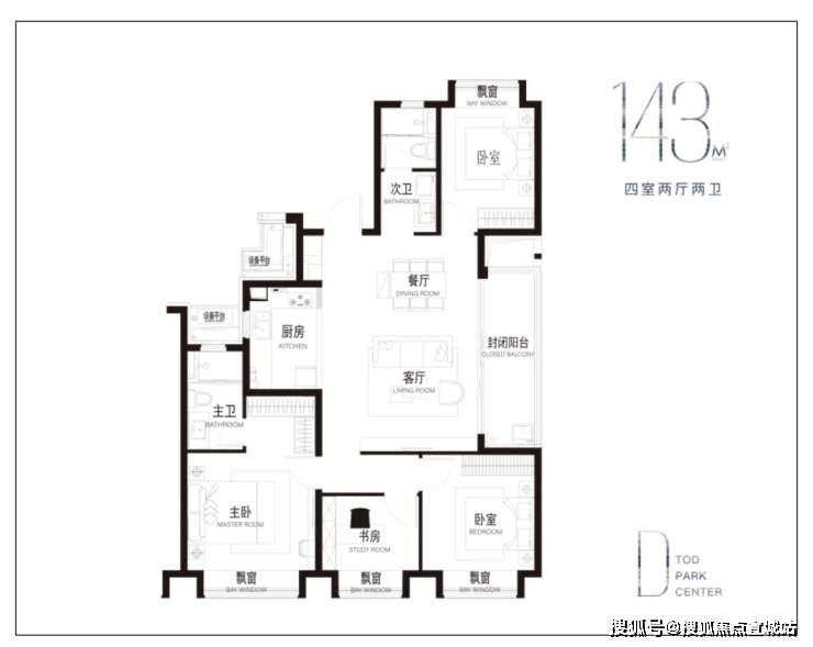 建面约143㎡户型则是项目此次的明星户型,也是市场臻稀的终极改善产品,四房的功能性匹配愈来愈多的二胎和三代同堂家庭。格局上做到了南北通透+三开间朝南,采光和通透性俱佳!