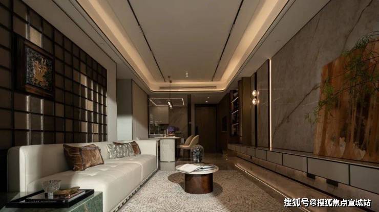 比如说,圆弧形吊顶让空间更具柔和美感,金属线条提升空间的层次感,细节之处精致考究。