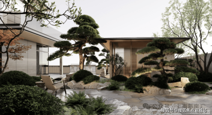社区景观以 “山林云境” 为主题,打造 “一轴三境九景” 的园林格局:入口处的樱花溪径,春季落英缤纷;中心的银杏广场,秋日金黄满地;沿湖的亲水平台,夏季清风送爽,再搭配松竹梅兰等中式绿植与叠石水景,将佘山生态风貌与社区园林无缝衔接,步移景异间尽是东方园林的雅致。