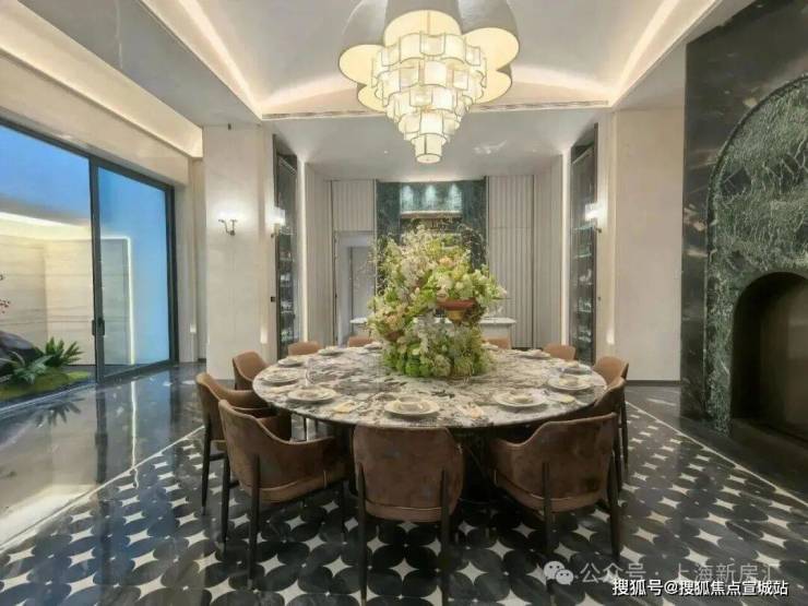 建筑外立面采用高端氟碳喷涂铝板、意大利进口天然奢石与德国旭格系统门窗,搭配复刻宋式建筑精髓的飞檐斗拱、格栅花窗,线条简约大气却暗藏东方韵律,历经岁月洗礼仍能保持质感如新;屋顶采用深灰色陶瓦,与佘山山林的自然色调相融,从空中俯瞰宛如生长于山林间的璞玉。