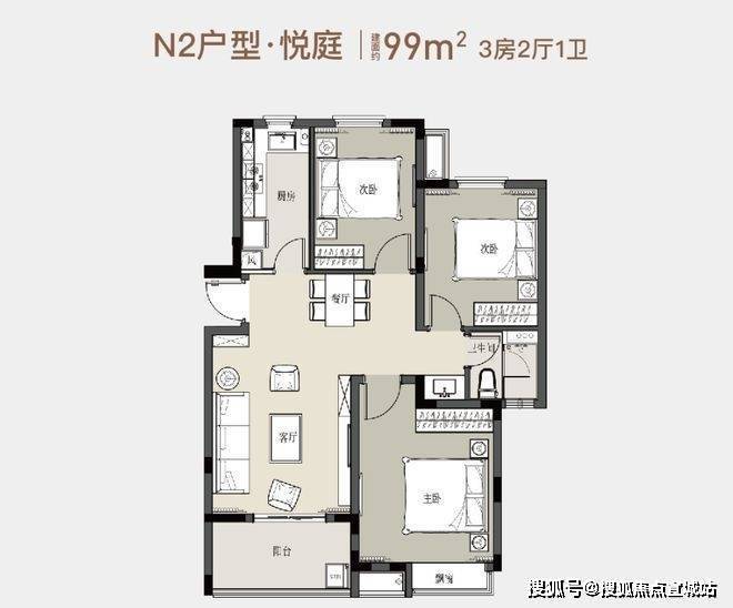 1、户型不仅南北通透,采光充足,还有南向双阳台,是经典飞机户型.