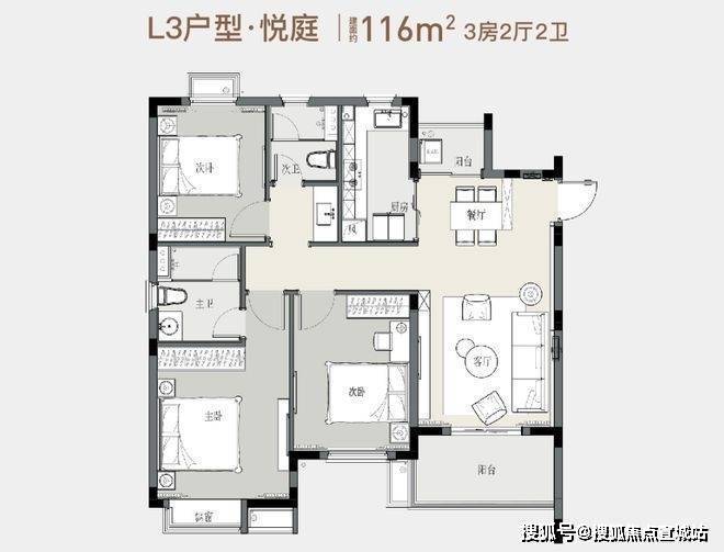 1、户型设计方正,飞机户型经典,布局井然有序.