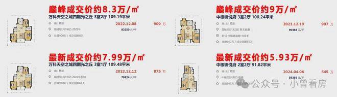 然而同区域地段更好的中核锦悦府,巅峰成交价超过9万/㎡,如今最新数据中有一套中楼层房源5.9万/㎡成交,对比初始约6万/㎡新房均价,甚至已经“破发”!