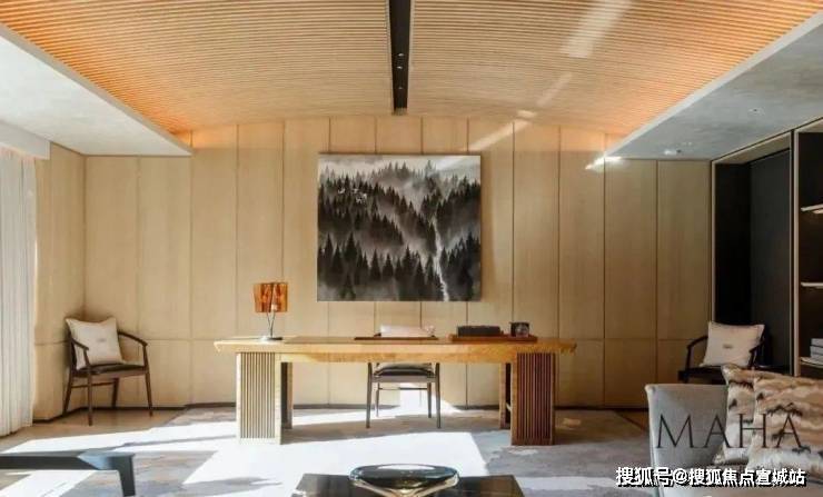 室内设计,秉承摩登东方的理念,设计以人、生活为中心,从空间本体和情感层面都回归生活,270度环幕采光,开放式会客厅设计,兼具尺度感与功能性。
