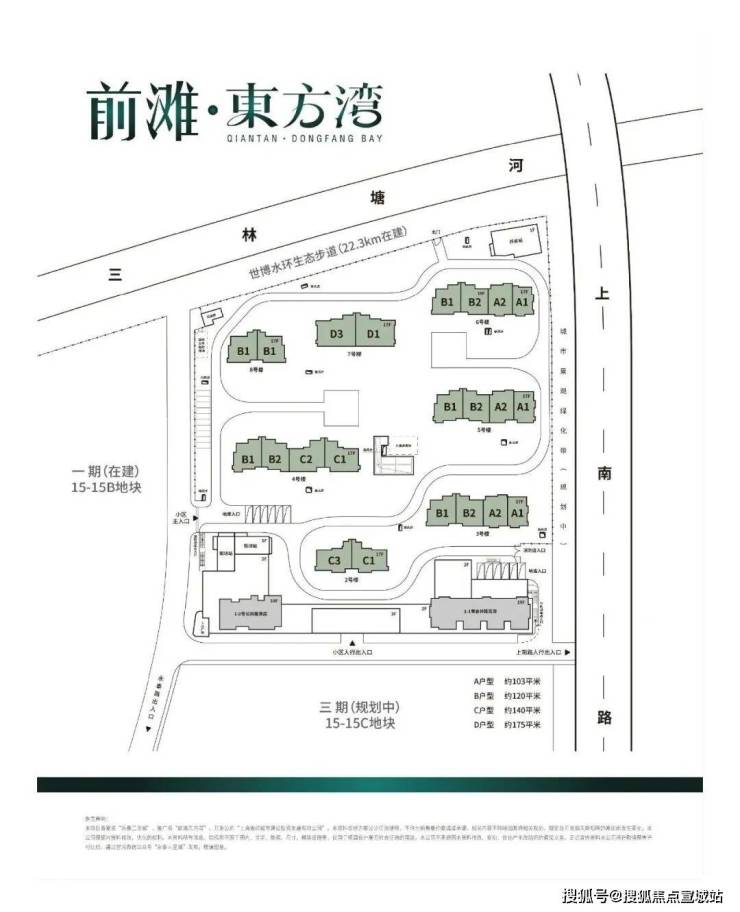 基本信息:位于浦东前滩板块腹地,地址为永泰路353号,北起川杨河,南至华夏路中环线,西临黄浦江。项目总占地约6.2万平方米,总建面约18.5万平方米,由12栋18-26层高层住宅组成,共986户,容积率为2.4,绿化率达45%,车位比为1:2.1,采用全人车分流设计。