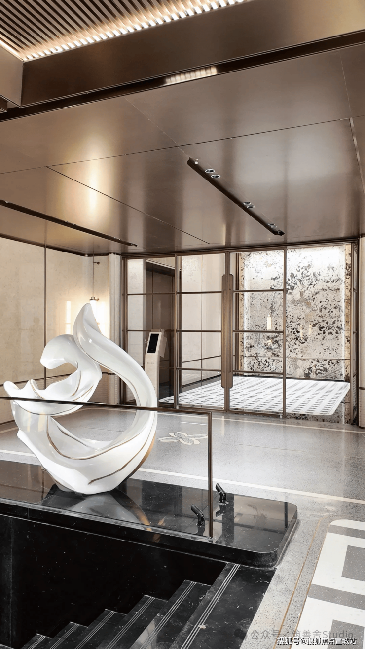 大平层建筑立面以大面积铝板、首层局部石材及大面积玻璃构成,屋顶建发中式标志性的飞檐设计,美观的同时还比较显格调。