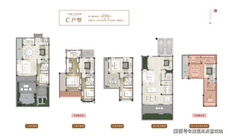 这种大宅的丰赡感,一直从园林延展到了室内。禾原组团的户型,都预留电梯井,大部分卧室都采用套房设计。凡是一楼设计了老人房的,必是带卫生间的套房,对长者特别友好。以约250㎡C户型为例,开间约9.6米,做到了整整4个套房+1个书房。