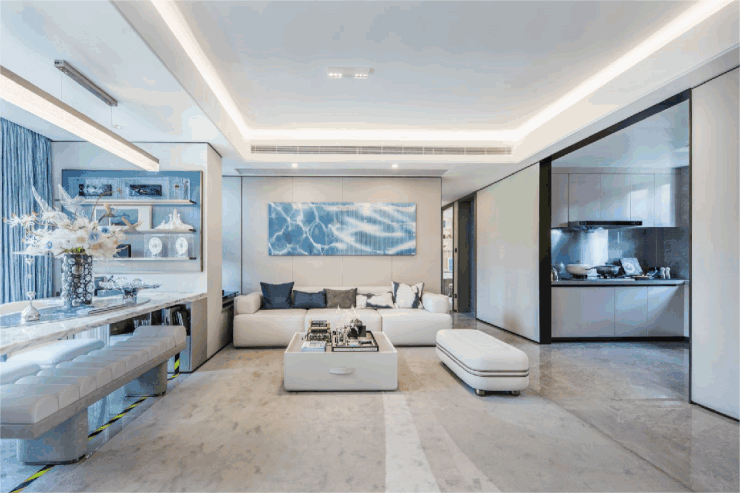 对比目前市面上同等面积产品,无论在空间感,还是整体功能布局上,国贸虹桥璟上这款105平三房两厅产品均具备爆红潜质:将客厅面宽最大化到约5.5米,这种尺度感一般在四房大平层产品上比较常见,合理利用阳台与大落地窗,不仅延伸了视野,还将餐客厅与阳台连成一体,让整体空间过渡自然,更显通透、明亮;