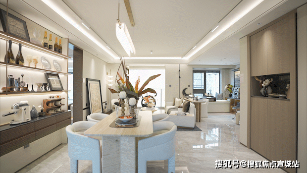 餐厅空间相当阔绰,可放置四人桌或六人桌,尺度之大在400万左右产品中非常难得一见。
