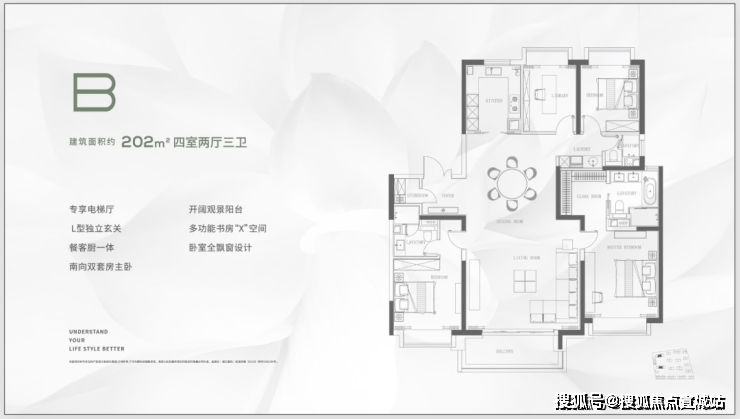 M+科技体系:首创M+科技体系,以智慧、健康、精工、生态四大体系,赋予空间美好的体验与品质,每一寸细节皆为生活悉心定制。