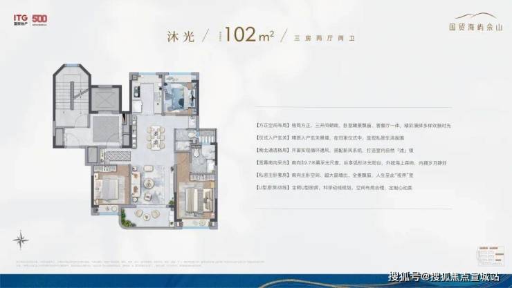 市面上大多百平小三房,都是“伪”三房,实际使用起来空间十分局促。国贸海屿佘山户型设计优点:客厅阳台约 270度采光体系+南向双飘窗+北房间也能够作成卧室,无连廊的飞机户型, 整体的得房率做到了78-80%。
