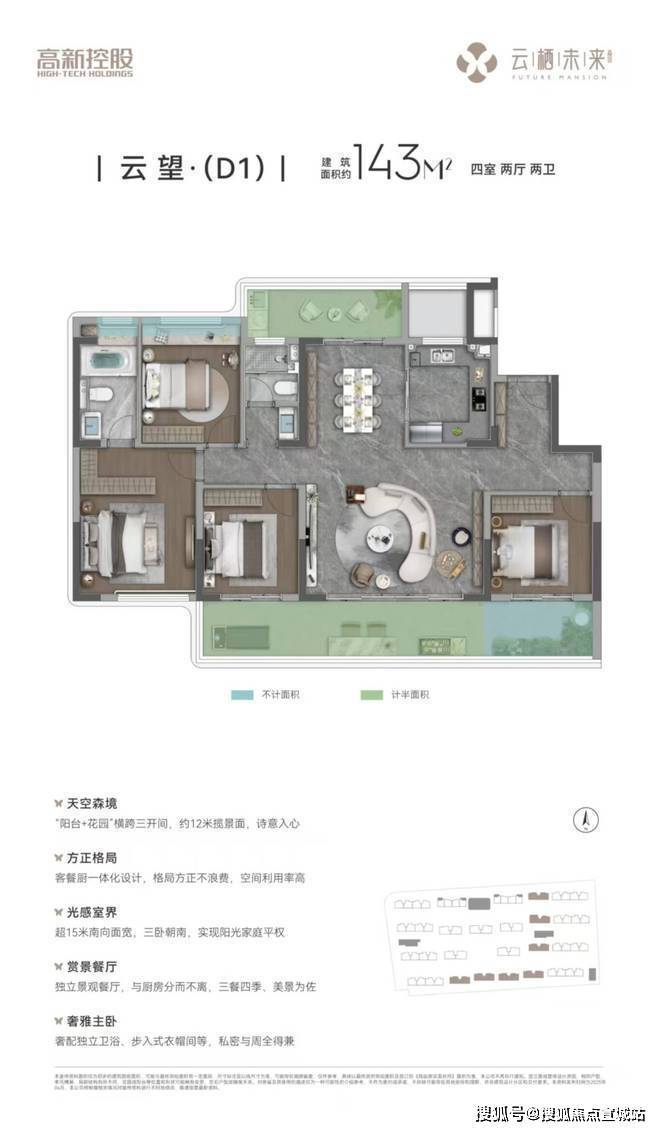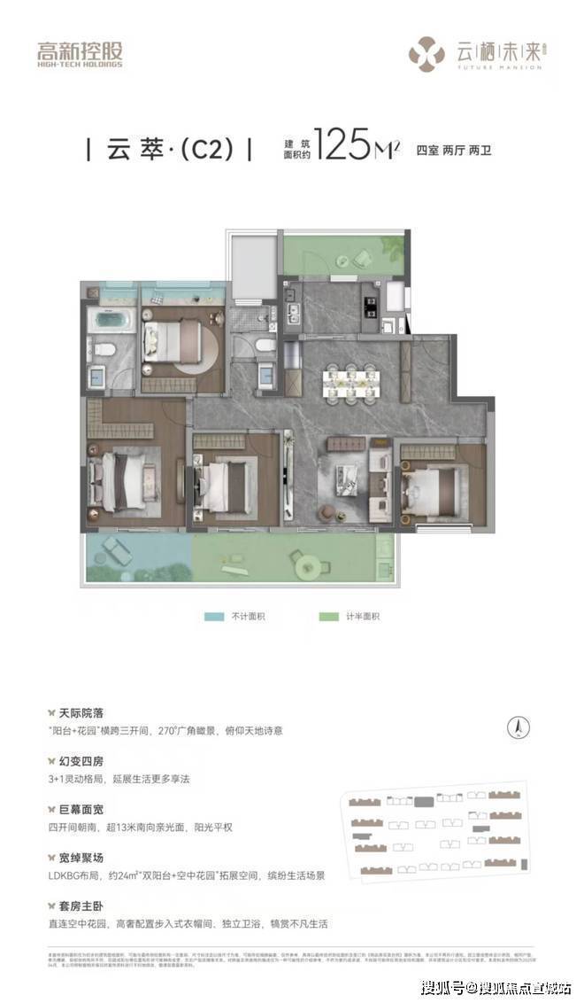 空间利用率的史诗颠覆。主城芯低密洋房规制,创新垂直花园设计,向上重构空间价值,大开间、薄进深,“全景飘窗+南向双面宽阳台+北向功能阳台+不计容空中花园”等多维空间赋能,实现超阔空间使用率。