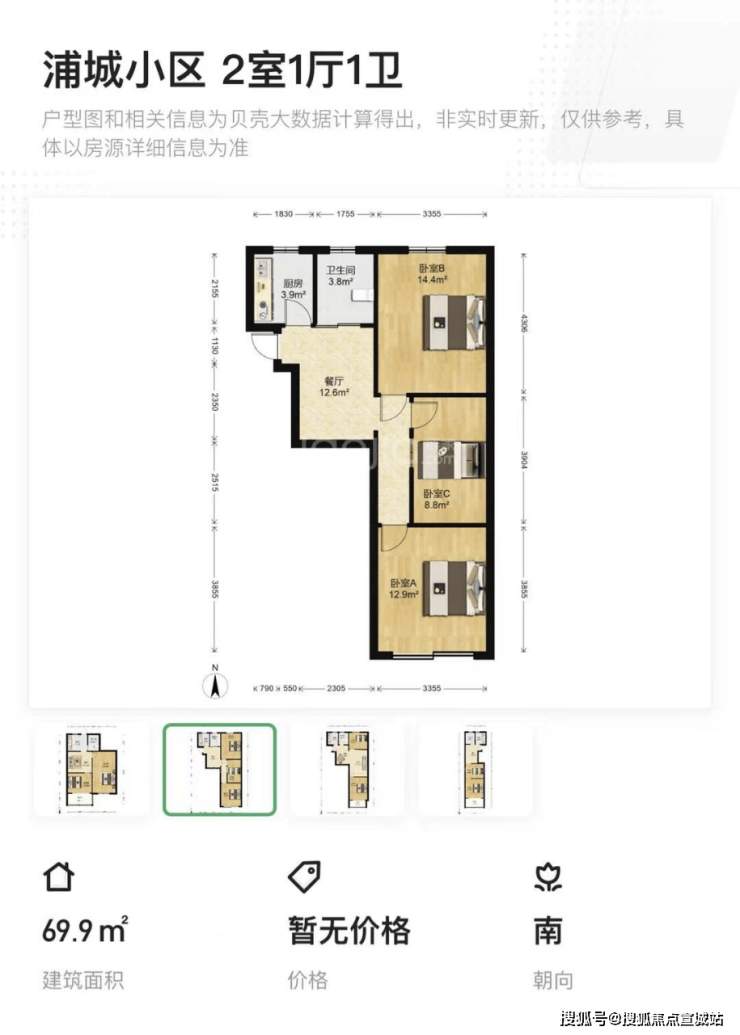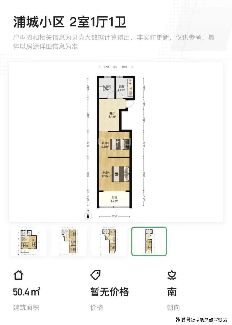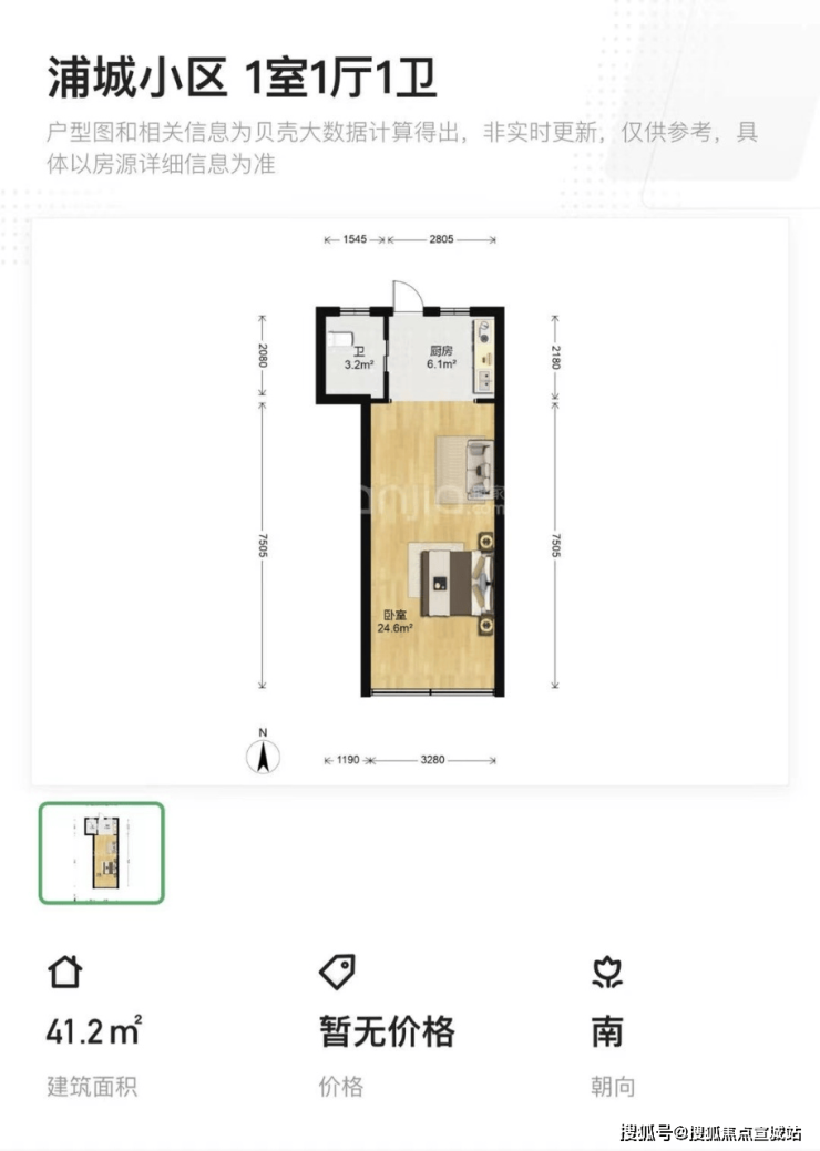 户型面积:有建面约 41-72㎡的 1-2 房,全明朝南户型。