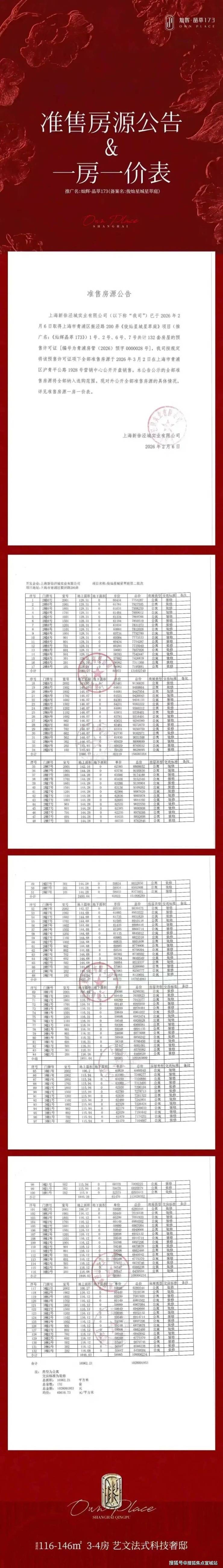 最新消息:大虹桥徐泾新盘【灿辉·晶萃173】,即灿耀星城四期项目,主力户型建面约116-146㎡3-4房,第二批房源已取证,2月8日开启认购,3月2日开盘!