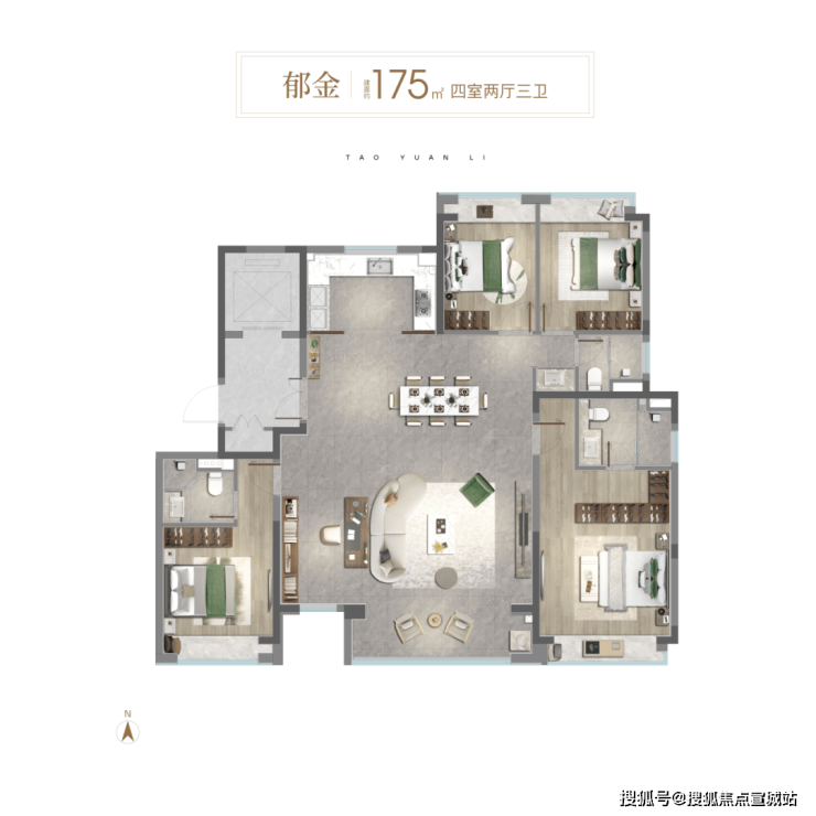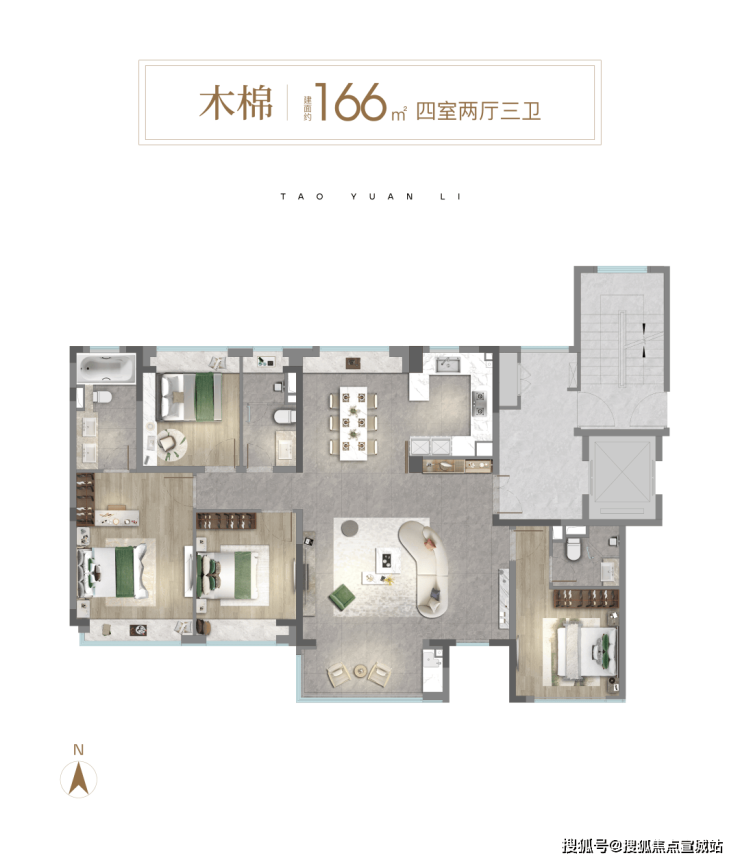建面约166㎡因为电梯双开门的缘故做到了类一梯一户,更有同类户型少有的【家庭平权大4房】,卧室面宽全部3米以上,朝南设置双套房,直逼星级酒店的居住体验!LDKB一体化格局,起码可容纳十多个人开party,其中客厅面宽约6.4米,气场铺开,霸气得像200㎡以上的大平层!