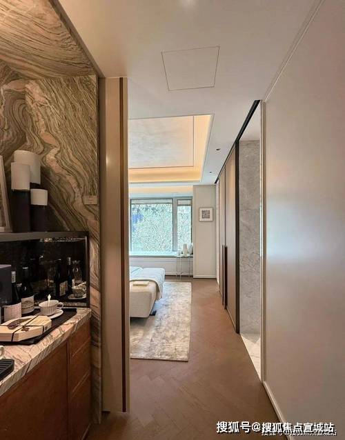 从海派入户旋转门推门而入,第一眼便能看到约13-15米的挑高大堂,艺术阶梯其作为艺术展示的重要空间,最大程度引入自然光,为空间打上朦胧、柔和的光感,融合左右两边的弧形柱体,犹如登山之“径”,随着脚步一步步叠加行进的趣味,沉浸的归家体验感随空间变化逐渐递增。