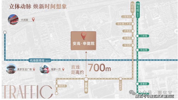 安高·申陇院全城高能级资源内外通达,沪闵高架路、虹梅高架路、银都路等主城核芯干道,纵横连接全城活力节点同频上海发展,生生不息。