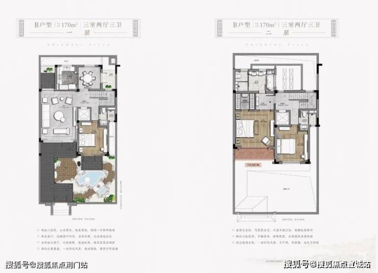 一般的合院,都会建成2+3,地下两层,地上三层。但是春江御园示范区却打造了2+2户型,建筑主体地下两层(其中一层为地下室夹层),地上两层。虽比一般合院少了一层,但却是十分合理的居住尺度。不论是建筑的美观度还是居住的体验感都是非常适宜的。