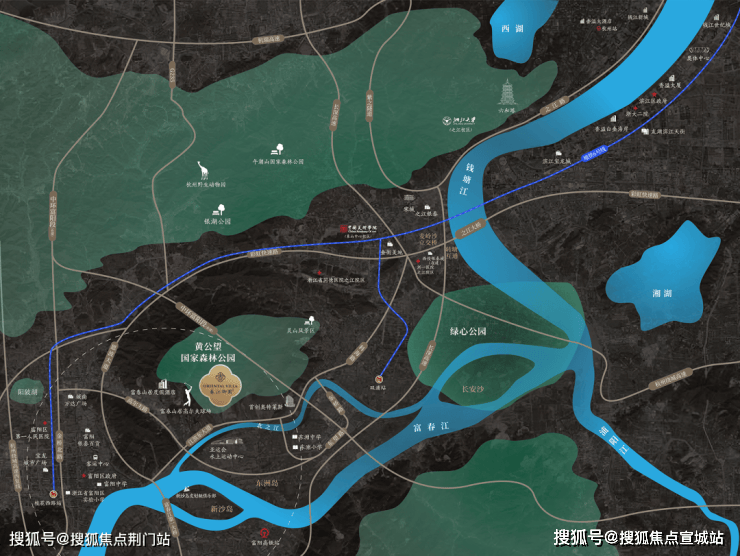 春江御园位于富阳东洲,面朝富春江,背靠黄公望森林公园,离钟先生经常去露营的铜鉴湖大概10公里,对这一带,他还是熟悉的。从滨江开过来,一路经过彩虹快速路、之江大桥、江滨东大道,直达项目现场,非常便捷。