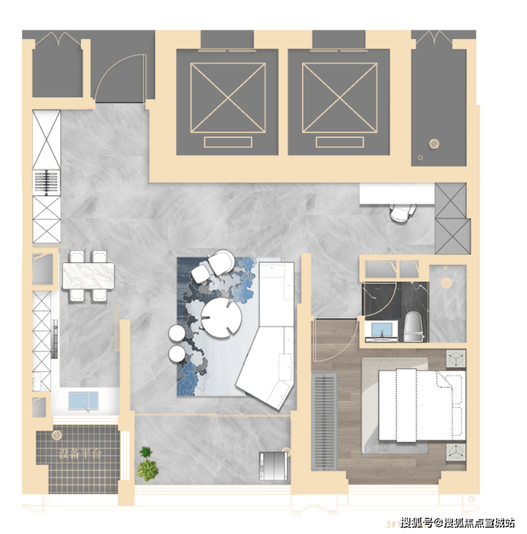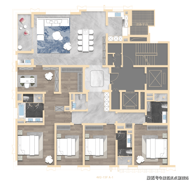 尤其主卧星级套房,配置独立衣帽间、书房,奢华主卫四分离,双台盆+淋浴区+大浴缸+智能马桶,私密性&奢适度无敌;