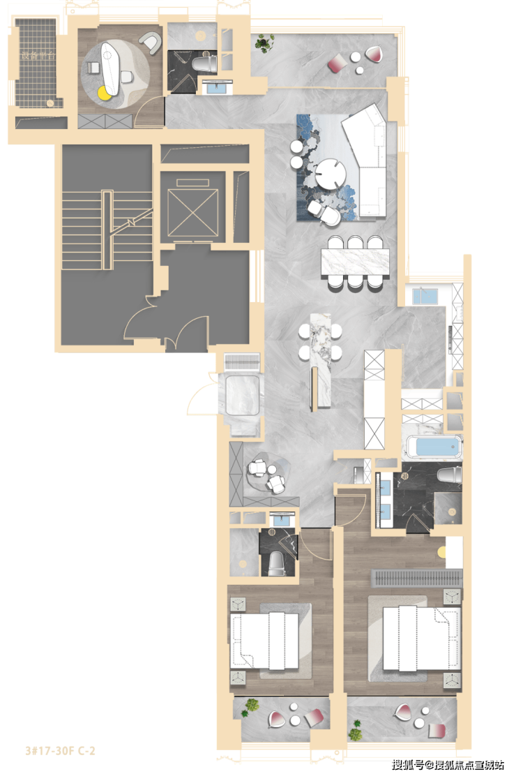 建面约193、237㎡为类一梯一户设计,拥独立门厅;建面约303㎡ 标配2梯1户、私享梯厅,纯粹的大平层圈层!