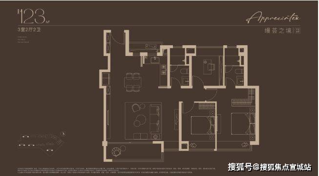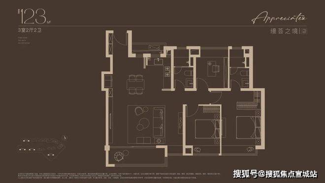 建面约123㎡3房户型,户型方正,三口之家的改善进阶之选!巧妙预留X空间,既可成为客厅空间的延伸,也可独立成室,实现更多功能想象。约12.5米南向面宽,搭配270°宽景阳台,窗外美景一览无余。