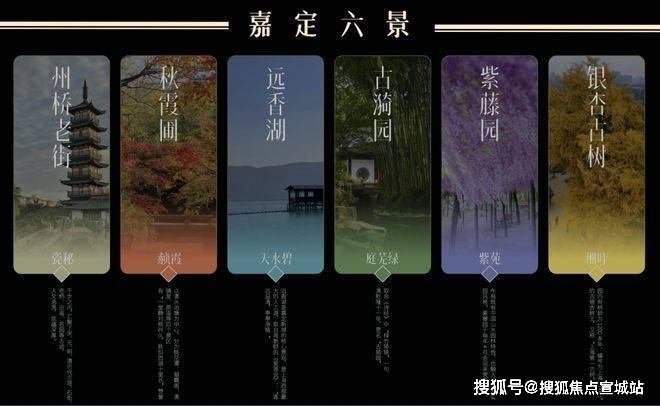 建筑们围合出的中心花园中,州桥老街、秋霞圃、远香湖、古猗园、紫藤园、银杏古树等嘉定6景被南山地产提炼、转译,形成了具有在地文化特色的6大景观主题空间。