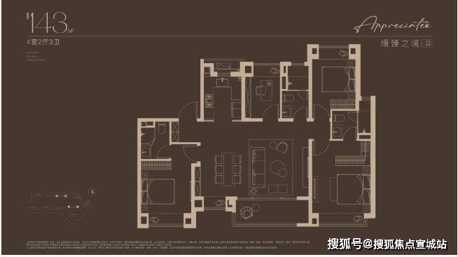 建面约143㎡四房设计,不论是三代同堂还是二娃家庭,都舒居无忧!2梯2户的设计,极具私密性的入户门厅,彰显大宅归家礼序。独立玄关,既是归家仪式感,更添收纳空间;约14米朝南面宽,搭配约7米尺度横厅,尽显大宅风范;东西双套房设计,奢享全龄世家的静谧时光。