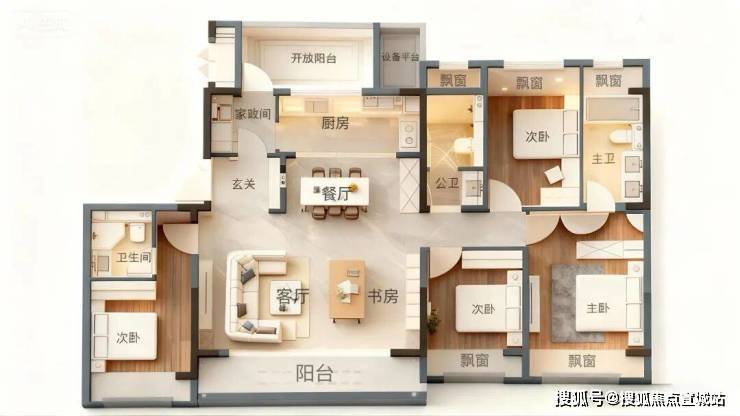 •南向三开间,均配置飘窗或阳台,乐享阳光浴