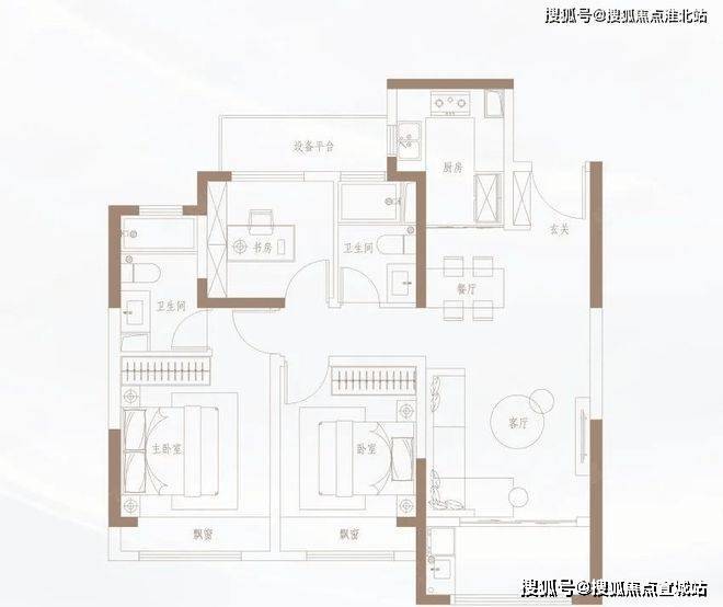 103㎡/113㎡户型较为传统,格局基本相同,3室2厅2卫,只是在尺度上有所区别。
