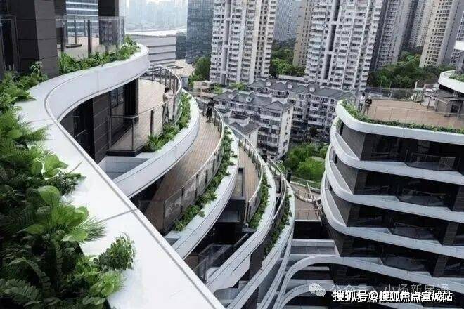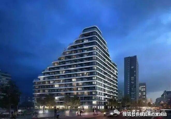 外立面采用玻璃幕墙现代简约风。建筑轮廓曲线蜿蜒,呈波浪线型层层迭高并后退,时尚感非常强。