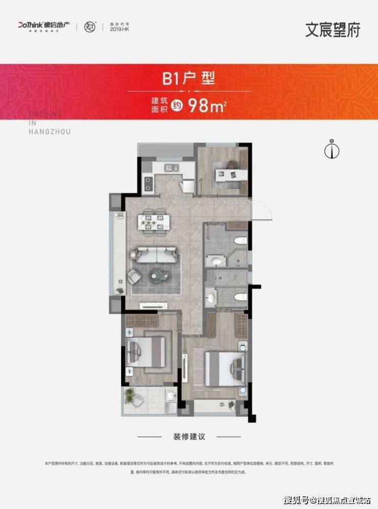 宸望府主要打造了建面约98-118㎡的产品。其中建面约98㎡的户型分为两种!