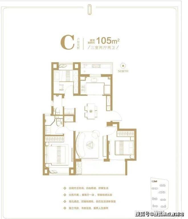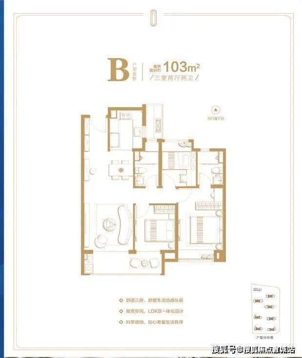 户型设计:户型方正,全明通透,如 94㎡三房户型,阳台半赠送,还预留了智能接口;105㎡三房采用双卫设计和 LDK 一体化布局;122㎡三房则是三开间朝南,采光极佳。