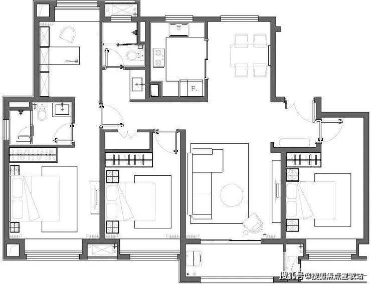约99㎡3房,客厅面宽非常舒适,三个房间空间都很实用,均能做成正常的卧室。